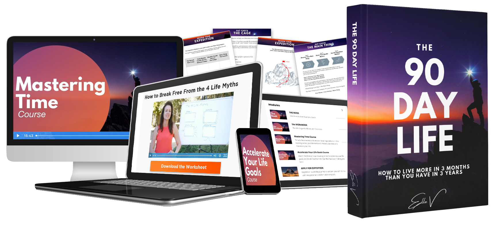 *The 90 Day Life digital book is just $4.99 and your order today includes 4 bonuses available for FREE only on this page. Order your digital copy now and you’ll also receive The Epic Life BLUEPRINT Course, 40+ Page WORKBOOK, Mastering Time Course, and Accelerate Your Life Goals Course!